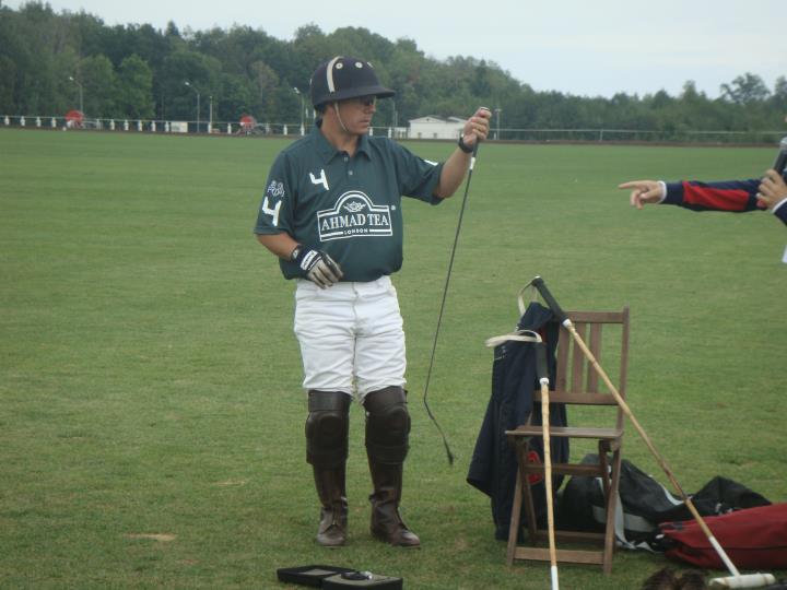 демонстрировал амуницию поло-игрока, основные приемы удара по мячу и рассказывал по