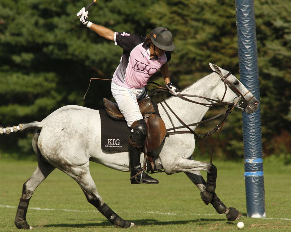 goal. One strong hit followed by two more measured strokes and the ball carried through the goal posts for the KIG victory. After fighting through six chukkers of knock-down, drag-out play, the match was decided in less than thirty seconds.